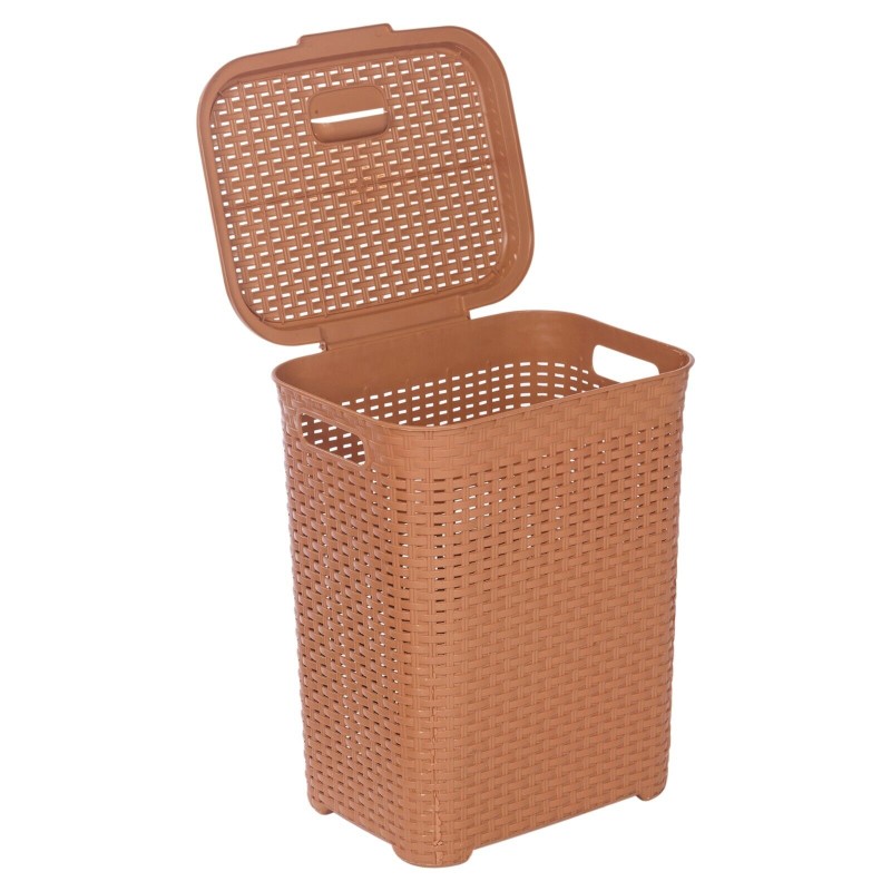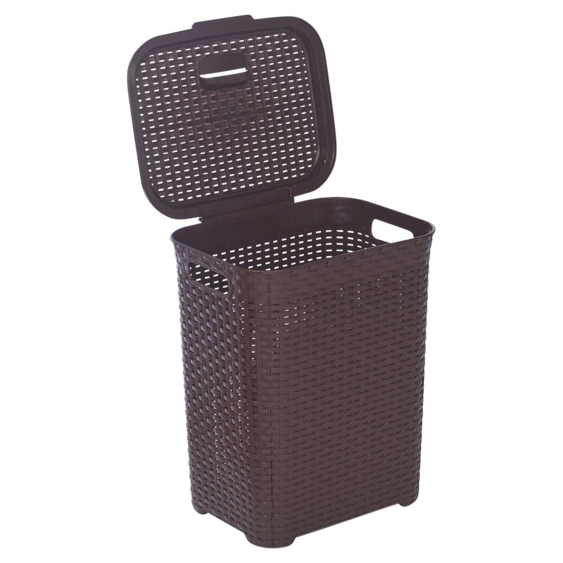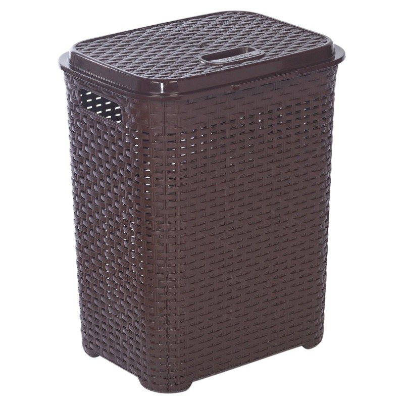 45/55L Plastic Rattan Dirty Laundry Clothes Washing Bin Basket Storage Organiser