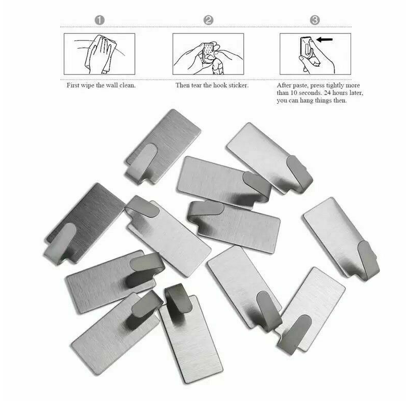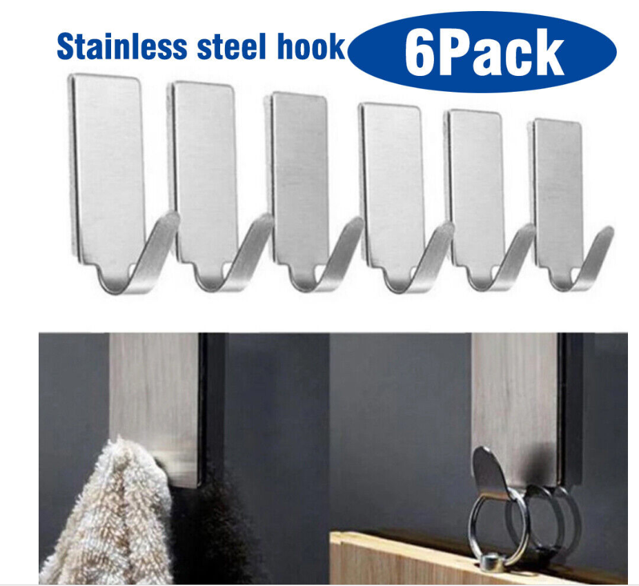 6PCS Self Adhesive Wall Sticky Hooks Strong Stainless steel Door Hook Holder UK