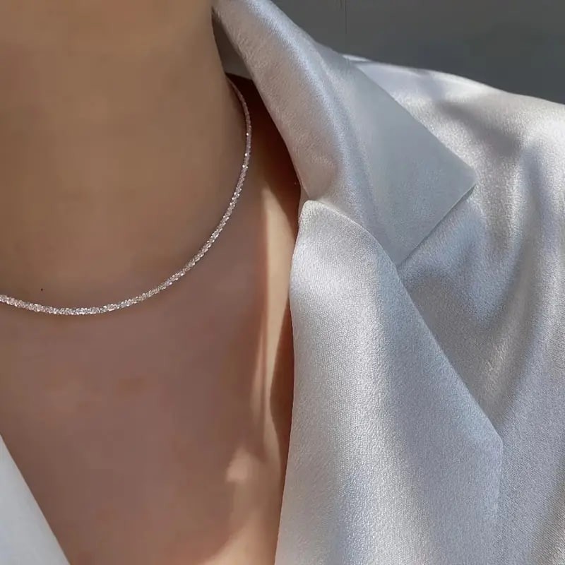 925 Sterling Silver Necklace Female Silver Chain Without Pendant 925 Clavicle Chain Naked Chain Galaxy Chain Thin Chain Stacked