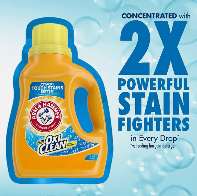 • DEEP CLEANING ARM & HAMMER DETERGENT IS POWERED BY OXICLEAN STAIN FIGHTERS. This supercharged liquid concentrated stain removal detergent powers out dirt and odors using OxiClean, America's #1 stain remover additive brand* (*based on units sold)