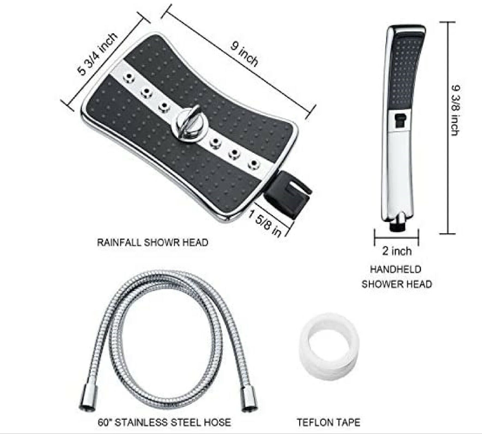 High pressure rain fall shower heads with handheld spray, fixed shower head with multi spray settings, enjoy a spa shower at home