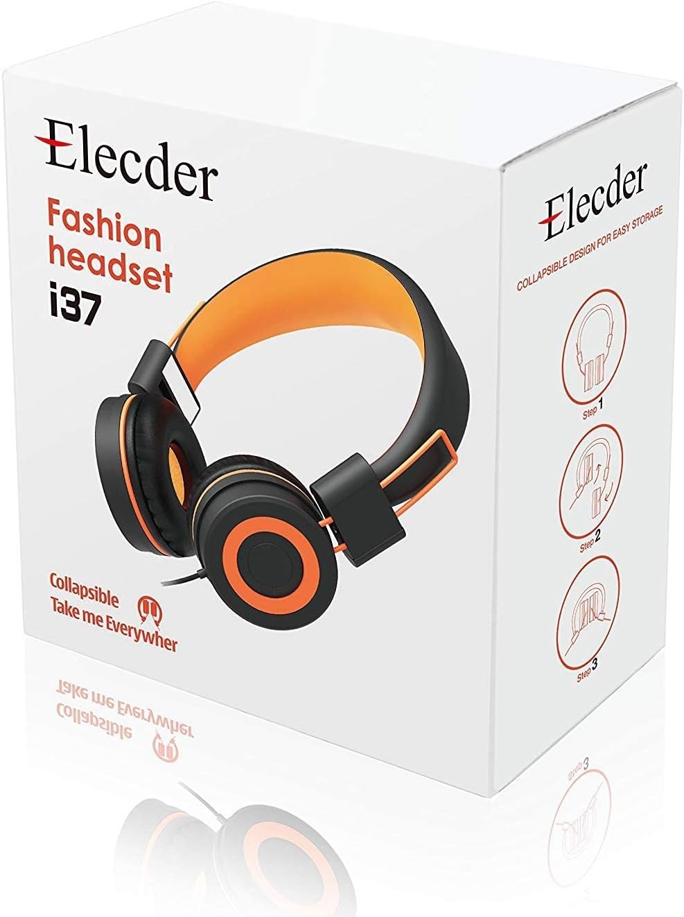 ELECDER i37 Kids Headphones Children Girls Boys Teens Foldable Adjustable On Ear Headphones 3.5mm Jack Compatible Cellphones Computer MP3/4 Kindle School Tablet Orange/Black