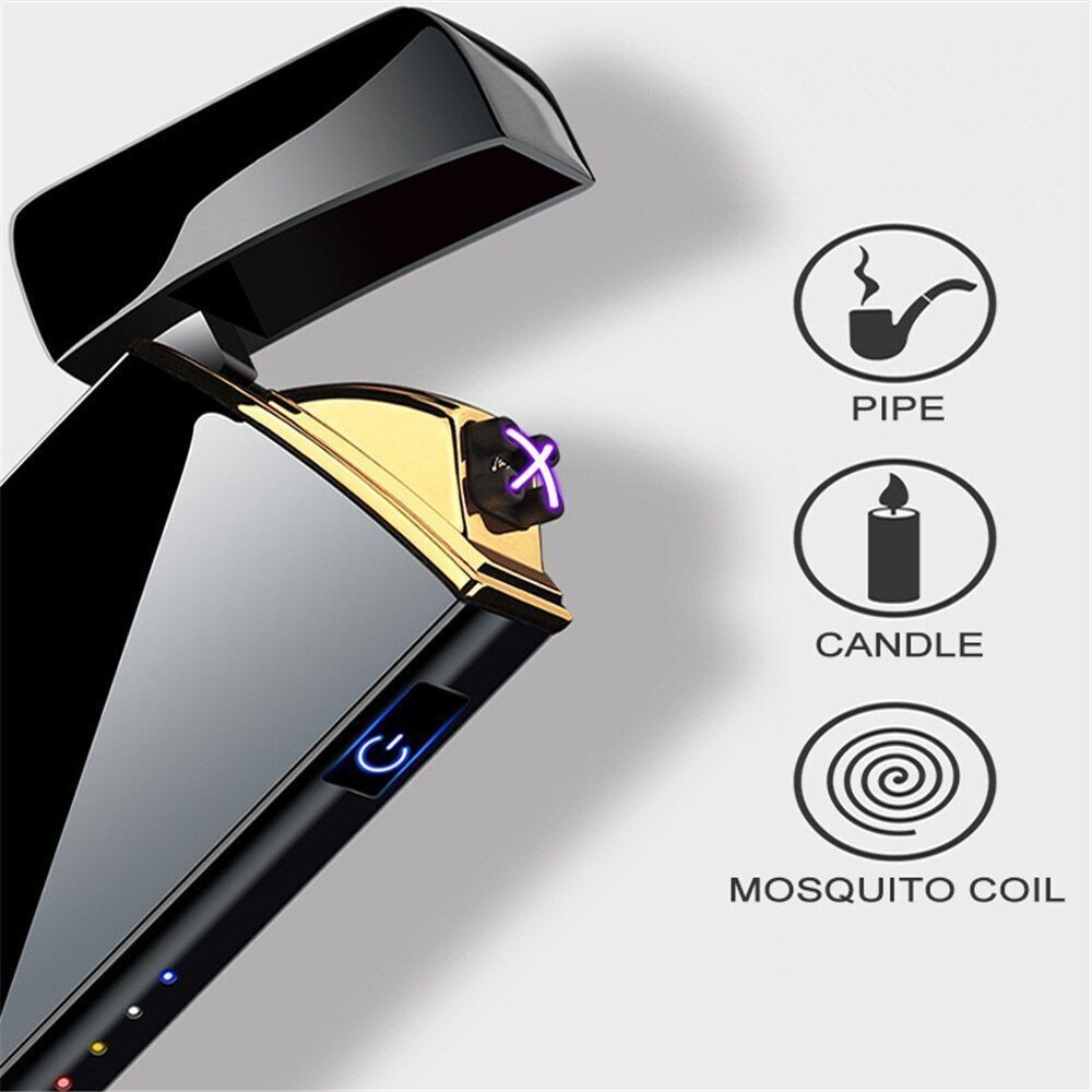 Electric Dual Arc Metal Cigarette Lighter USB Rechargeable Plasma Windproof