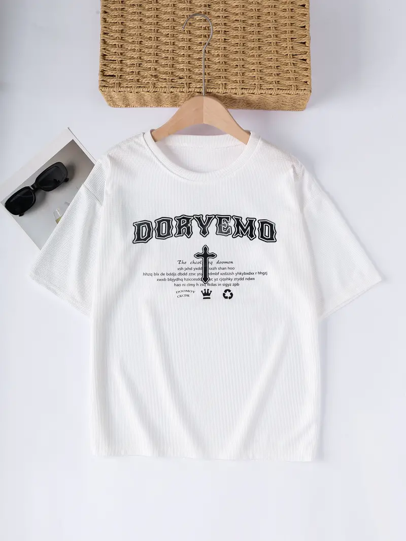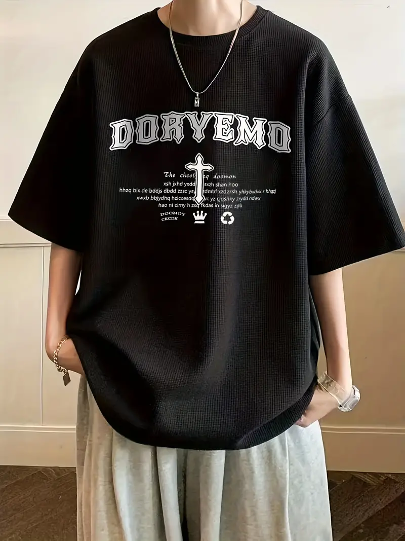 GM- Vintage - Fashion Brand - Hip Hop - Casual - High Street - Cross Pattern Easter Short Sleeve T-shirt