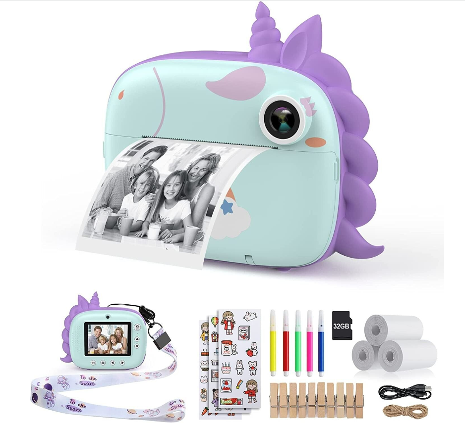 This kids instant camera adopts advanced zero ink technology to print without toner.