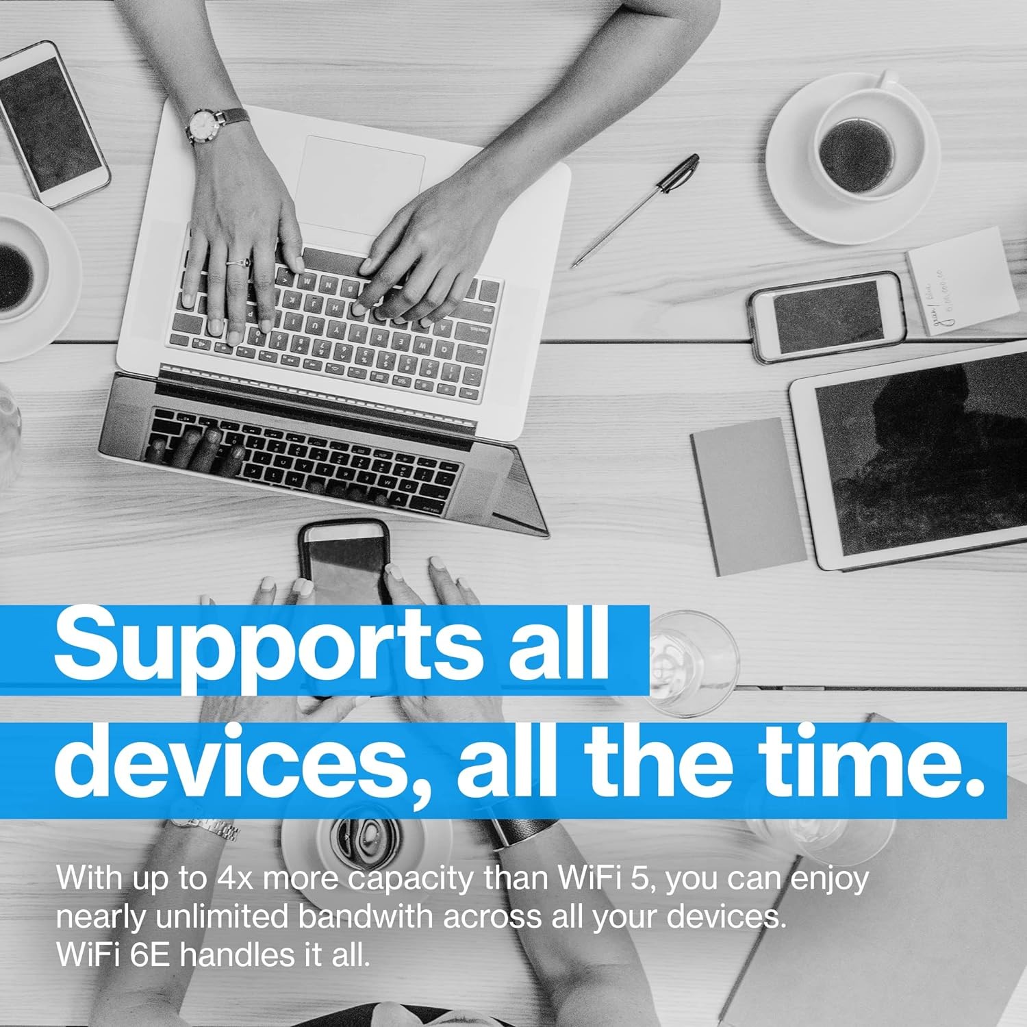 • STREAMING SUPERHIGHWAY: This WiFi 6E mesh router opens brand-new access to 160 MHz channels dedicated to the fastest & newest devices, with true gigabit speeds up to 5.4 Gbps (AXE5400)