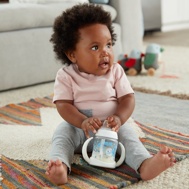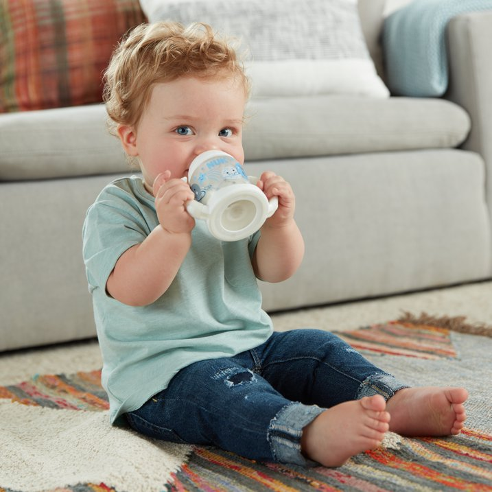 The NUK Learner Cup easily promotes the baby's transition from breast or bottle to sippy cup. This Learner Cup features a spill-proof soft spout that is gentle on teeth and gums, and it includes an air vent that helps reduce swallowed air. The cup also comes with easy-to-grip, removable handles that your growing child will love. NUK Learner Cups are BPA-free and dishwasher safe. Our 5 oz Learner cups are recommended for ages 6m+. Unisex.