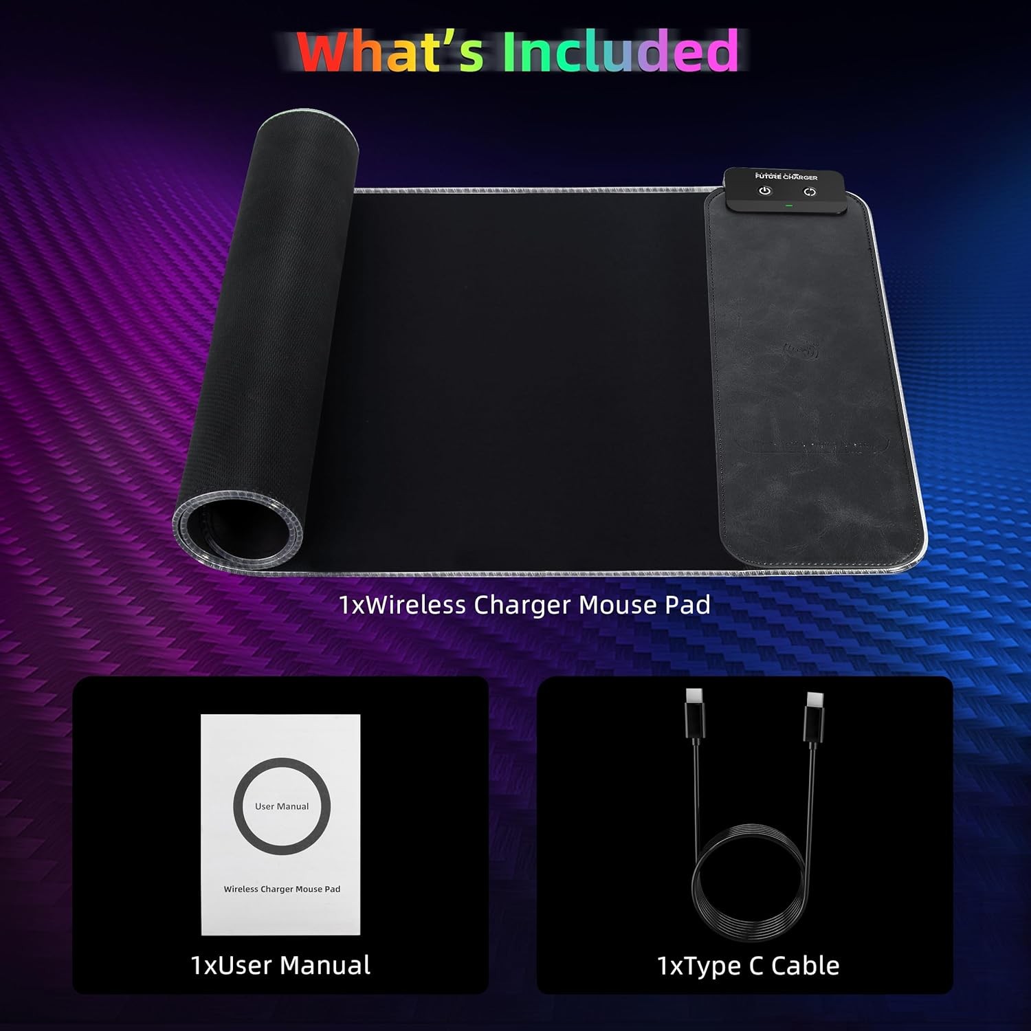 • 【9 Modes RGB Light Modes】: The RGB mouse pad's size is XXL and features 7 static light modes and 2 dynamic light modes; you can choose your favorite color according to your needs. One button control light modes. The colorful lights provide the visuals of vibrant colors and stunning effects. It's the best wireless charging mouse pad and desk mat for your desktop. A must-device for RGB mouse pad fans. Perfect for your gaming or working.
