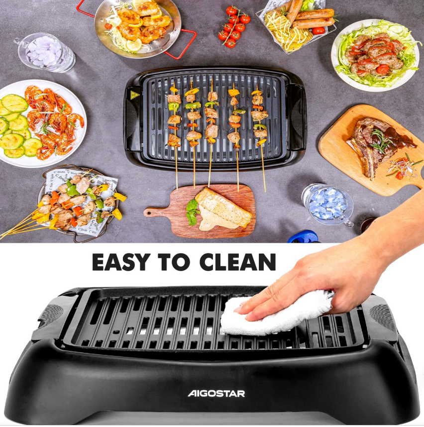 • : Non-stick grill plate and drip tray can be removed and easy storage. All parts (except temperature control and base) are dishwasher-safe. Simply wash and wipe them by hands, make clean-up a breeze! Aigostar Korean BBQ grill is your MUST-HAVE for the smaller kitchen. If you have any questions about our products, please feel free to .