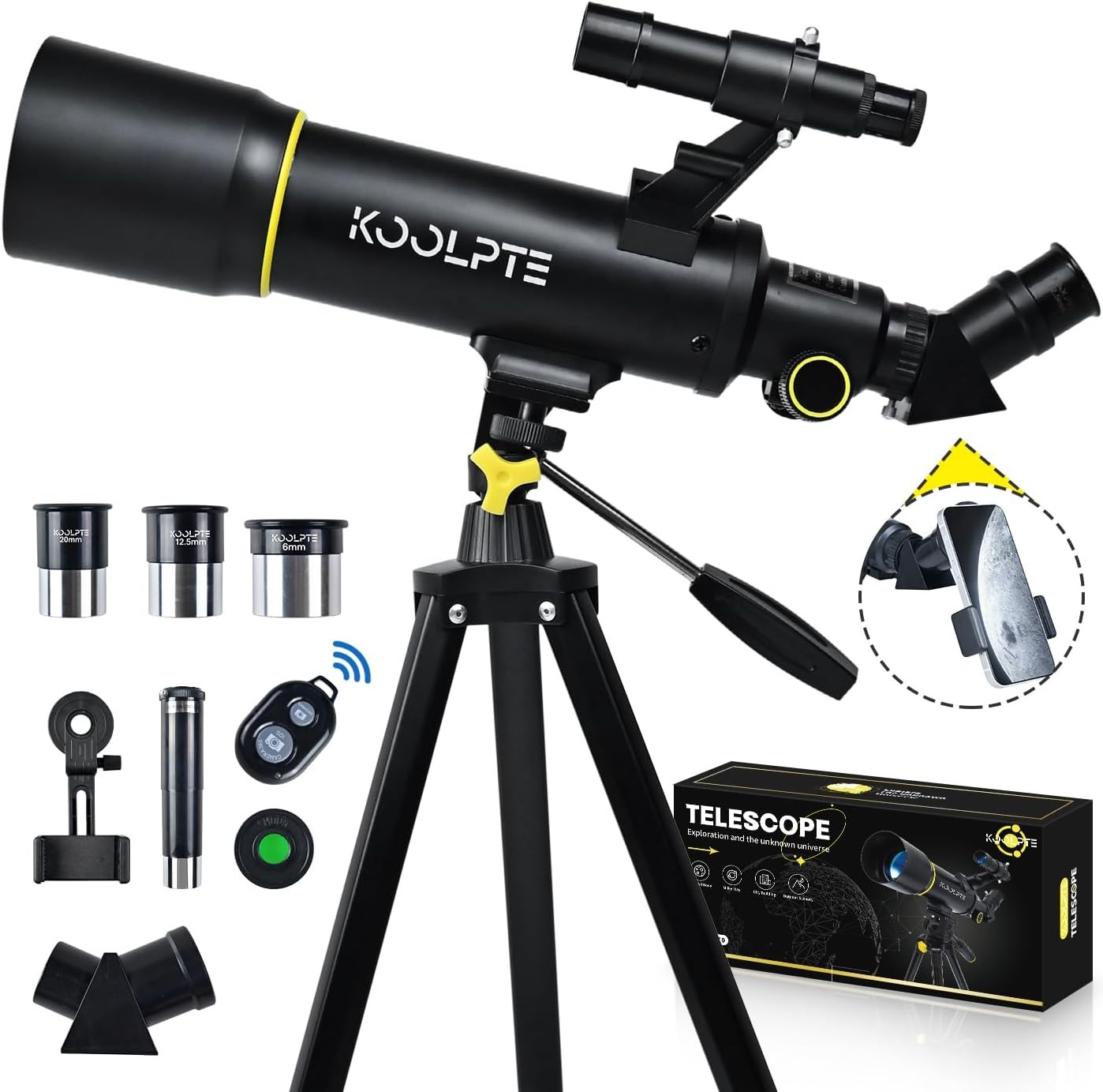 Telescope, 70mm Aperture 400mm AZ Mount Astronomical Refracting Telescope (20x-200x) for Kids & Adults, Portable Travel Telescope with Tripod Phone Adapter, Remote Control, Easy to Use, Black