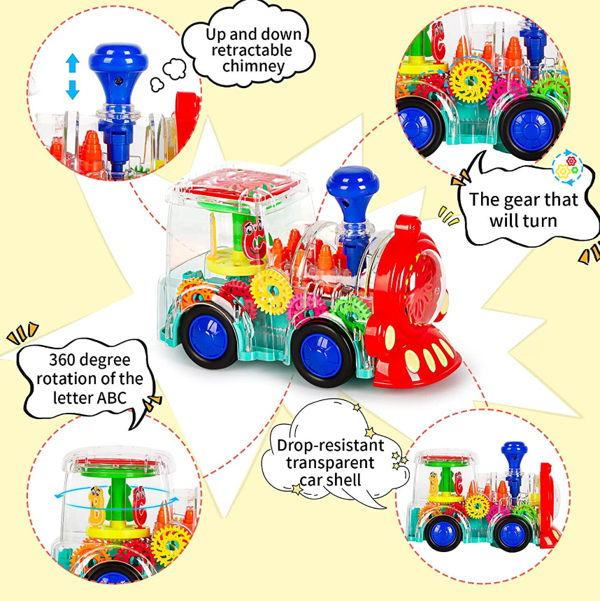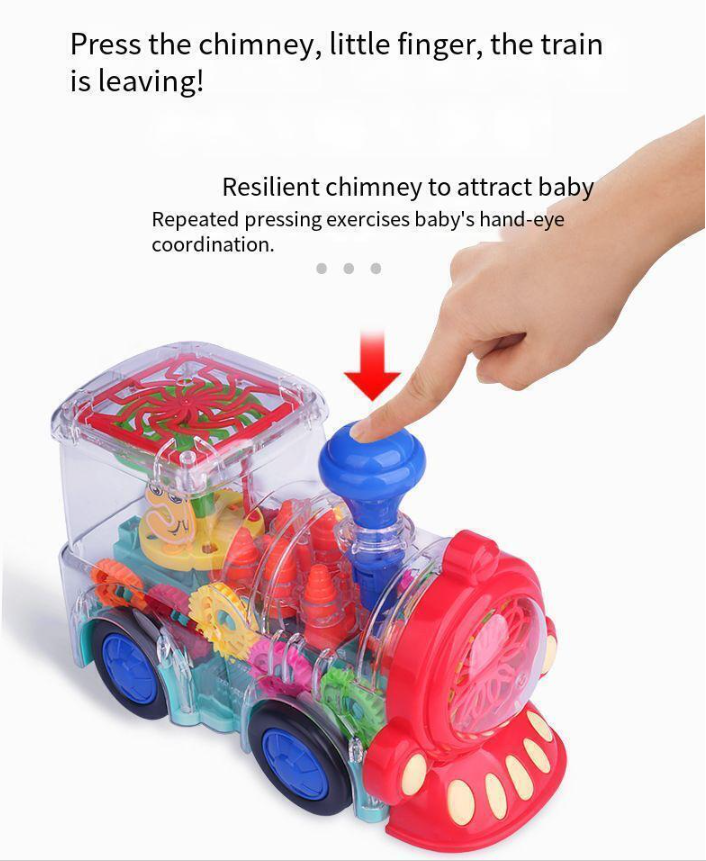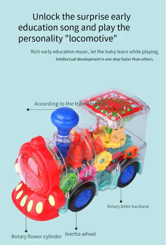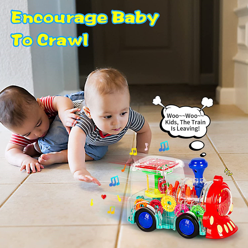 3. Train toys move with the sound effect of the engine, attracting babies to crawl and chase for fun. Baby likes to run with the train, like the light and sound it makes! Very suitable for babies to develop motor skills and learn how to control big muscles!