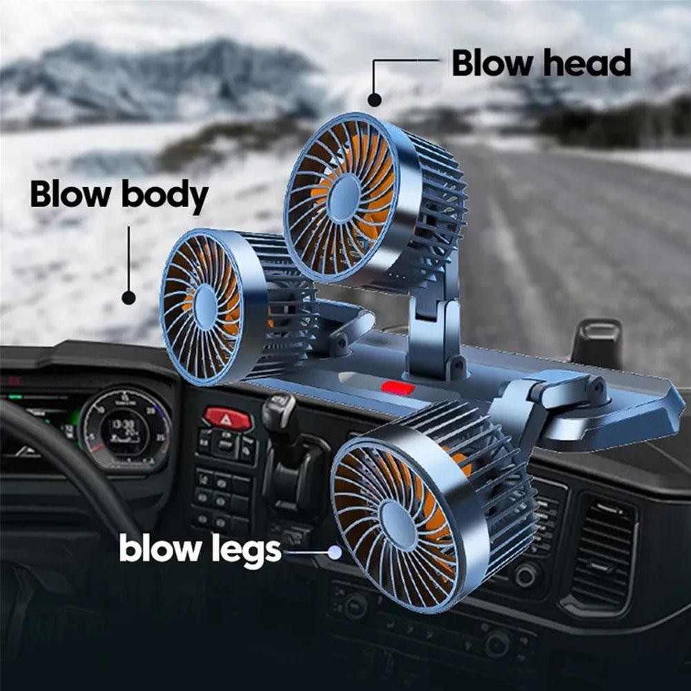 USB Car Fans Dual Head 360° Rotation, Powerful Cooling Fan