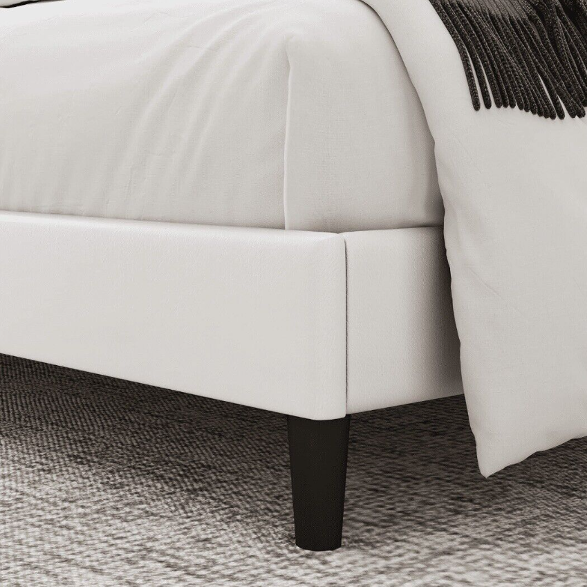 White Faux Leather Upholstered Button Tufted Low Profile Platformed Bed Frame
